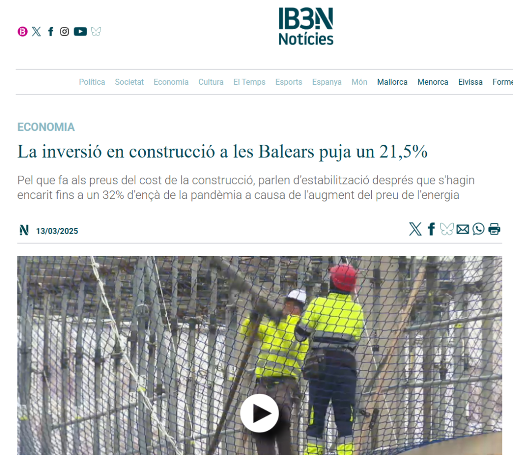 IB3 Noticies: La inversió en construcció a les Balears puja un 21,5%